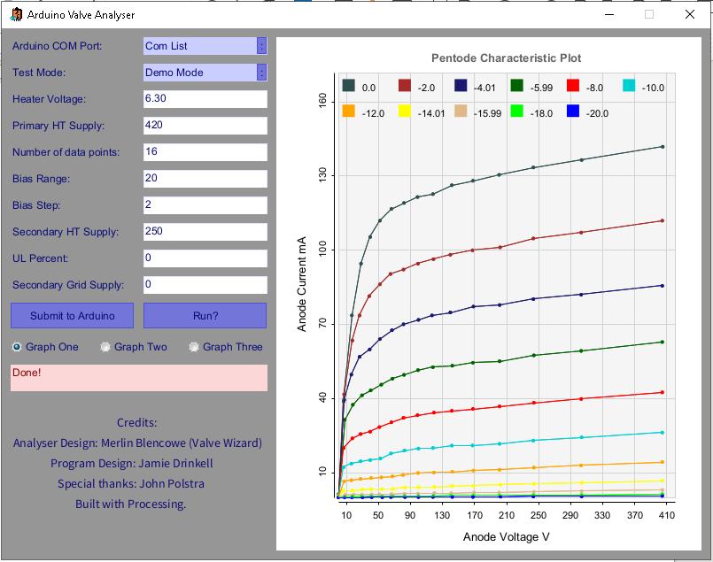 As such I gained interest in the idea of building some kind of Valve Tester. After a very good experience reading Merlin Blencowe's book "Designing Tube Preamps for Guitar and Bass" I found his Arduino based design on his site. He mentioned on the site that a plotting application would be very nice, and feeling inspired I decided to give it a shot.